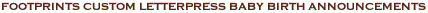 baby feet! an adorable baby announcement also available as stationery and a bebe calling card! exquisitely letterpress printed, with a deep impression you can see and feel. experience the letterpress difference! sample shown: strawberry with optional border upgrade