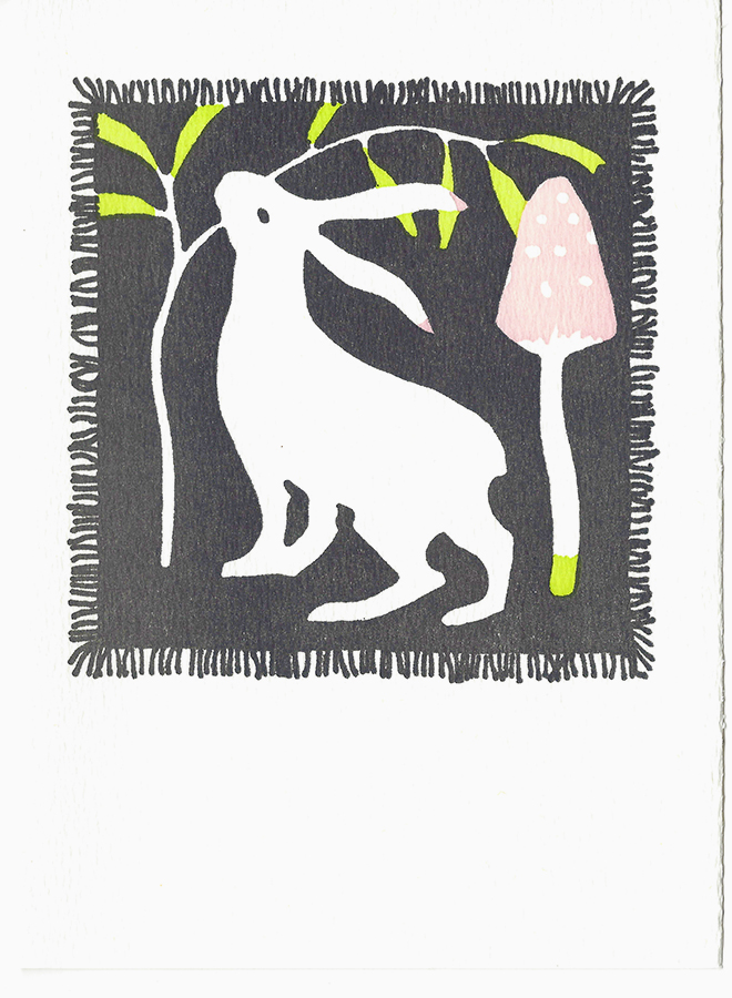 whimsical lapin rabbit! this all occasion card set is artisan letterpress printed on an antique letterpress by hand, one card at a time, on generously sized 5" x 7" folded soft white cards. blank inside for your personal note. bunny rabbits are symbols of long life and good fortune in many parts of the world.
