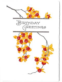 beautiful bittersweet flowers! from the floral birthday series, unique hand-lettering captures the beautiful spirit of the flowing branches. artisan letterpress printed in saturated colour on a generously sized 5" x 7" folded white card with a fine deckle edge on the cover. antique letterpress printing. blank inside for your personal greeting.